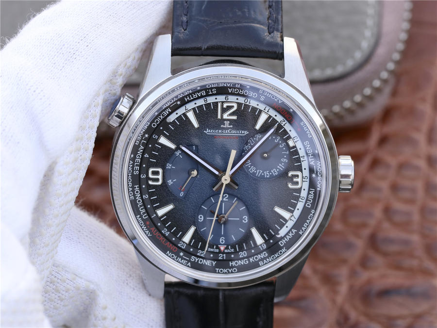 積家北宸繫列限量高仿手錶 TWA積家北宸繫列¥3380 郵箱:[email protected] Wechat(微信):V2928124168 TWA積家北宸繫列 Geographic WT“全球限量版250只”地理學家世界時腕錶採用藍黑漸變色與全黑色錶盤 腕錶的凸緣顯示全球24個時區 成為行動派男士旅行期間的可靠搭檔 佩戴者可透過10時位置的錶冠設定 尺寸42mm錶殼 316L鋼殼 搭配拱藍寶石“鍋蓋”鏡面 採用亞洲機芯高仿手錶版:936A/1自動上鏈 技術 城市名部分以乳白色為基底 2時位置的日歴顯示 6時位置的第二時區顯示和10時位置的動力儲存顯示副錶盤飾以太陽放射狀飾紋 進口牛皮 原裝摺疊扣