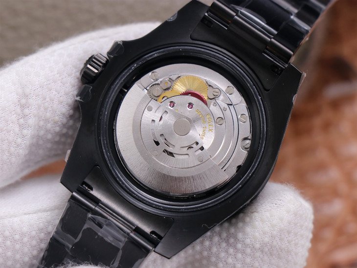 錶殼採用904L精鋼,在真空條件下進行Physical Vapor Deposition(物理氣相沈積技術)做黑,使金屬黑耀炫酷而且不易掉色。