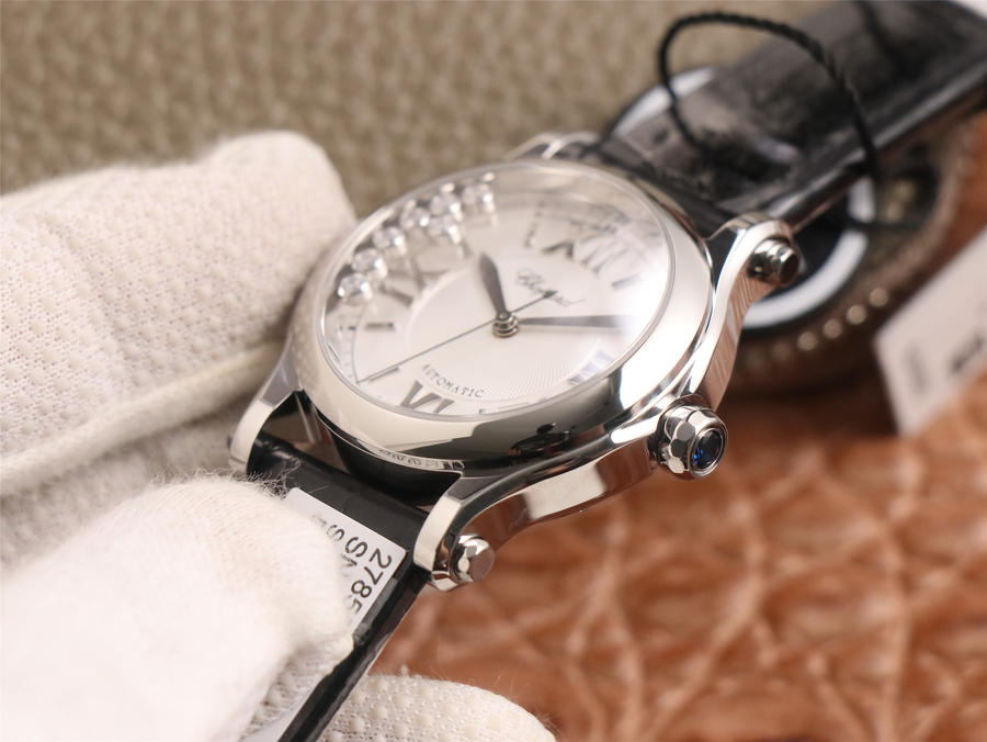 ZF匠心之作,厚積薄發!【靈動美鉆 璀璨肖邦!】修正了市面版本的所有不足。鉆石更靚,細節更精,還原度更高。nZF匠心之作——肖邦Happy Diamonds機械繫列278559腕錶華麗登場!n【錶殼】腕錶尺寸36mm,高度拋光工藝制作而成的錶殼採用316精鋼制作.可以在腕錶雙層藍寶石水晶玻璃錶鏡之間,恣意欣賞自在滑動的施華洛世奇美鉆。ZF廠將原版的靈動活躍還原,盡顯精致浪漫。n【錶帶 扣】與原裝一致採用的美洲短吻鱷魚皮錶帶,材質柔軟,佩戴超級舒服。原裝錶扣,細膩精致。ZF廠將原裝的每一個細節都展現得。n【機芯】採用與原裝同一結構的海鷗2892自動上旋機芯。兩者擺輪位置一致,調試日歴的方嚮和上鏈手感均百分百吻合與原裝。nZF優雅之作——演繹時尚,洋溢自由!歡迎各路錶友品鑒!
