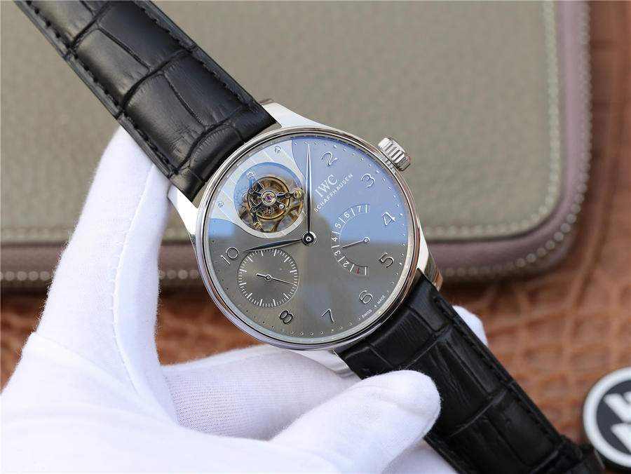 ZF万国葡萄牙系列逆跳陀飞轮腕表IW504207,优雅的贵族气息结合的视觉享受,神秘雅致,精湛非凡。【表壳】腕表尺寸44mmX15.5mm。精致工艺打磨的表壳尊贵大方,ZF熟练掌握IWC原厂的打磨技艺,线条流畅光滑,效果赏心悦目。滚花式表冠高仿手表到位,保留了正品原有的姿色,操作手感与原装不相上下。【实现原装功能】表盘右半是7天动力储备显示器,能够精确的显示发条盒的剩余动力;日期显示同样具有月底飞返功能,刻度盘跨越了整个表盘的四分之一,大气磅礴。每当到达有31天的大月月底时,日期显示自动跳回至1日。而在小月,或者有一段时间未佩戴腕表后,则可以通过“快调功能”将日期显示向前推进,然后飞返至该月的第。【大卖点】ZF工厂高仿手表此81个零件构成陀飞轮装置,同正品一样安置在12点位的圆形窗口内,镀铑的擒纵轮与镍银静止轮夹板都煞费苦心的由手工进行切割,各个微细零件打磨精湛,包括大量抛光的内角和斜角,细节可媲美正品。【表带表扣】采用意大利小皮材质表带,质地柔软细腻,手工缝制的丝线,纹路清晰,均匀规整。配备一枚原版开模的IWC折叠表扣,上面刻有“IWC”万国的经典标志,大方富有档次,做工同步原装。