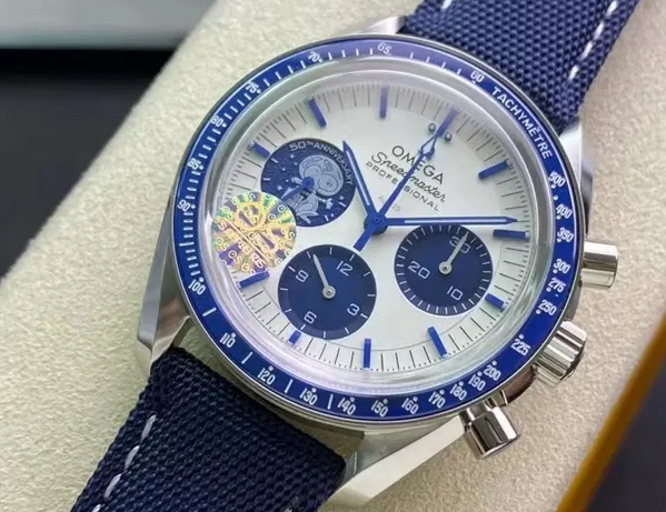 OS廠歐米茄史努比50周年款外錶更有藍色氧化鋯陶瓷錶圈,再加上測速刻度。還有錶殼,背部用的是獨特的鎖扣技術錶。OM廠所生產的這款腕錶,除了在外觀上就有著很多的優勢以外,它佩戴也特別舒適,因為它採用的是全新三珠鋼帶,戴上也很時髦,在錶扣上也有logo。圈口在後期盡量不要磕碰,畢竟它是陶瓷的材質,如果磕碰肯定會有經濟上的損失。