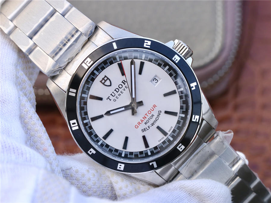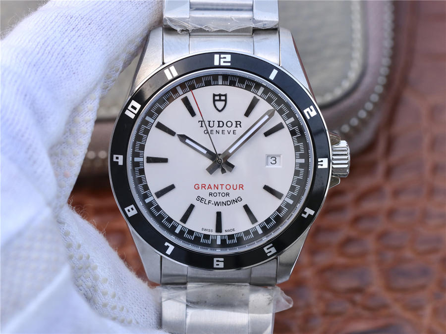 帝舵GRANTOUR繫列 直徑42毫米 ETA-2824機械 振頻28800每小時振蕩次數 動力儲備38小時 藍寶石水晶玻璃 深度防水50米 高精度的打磨,使整個錶殼質感非凡。錶耳的弧度和線條流暢。各個死角的處理都相當仔細,所有工藝和細節全部吻合原裝正品。