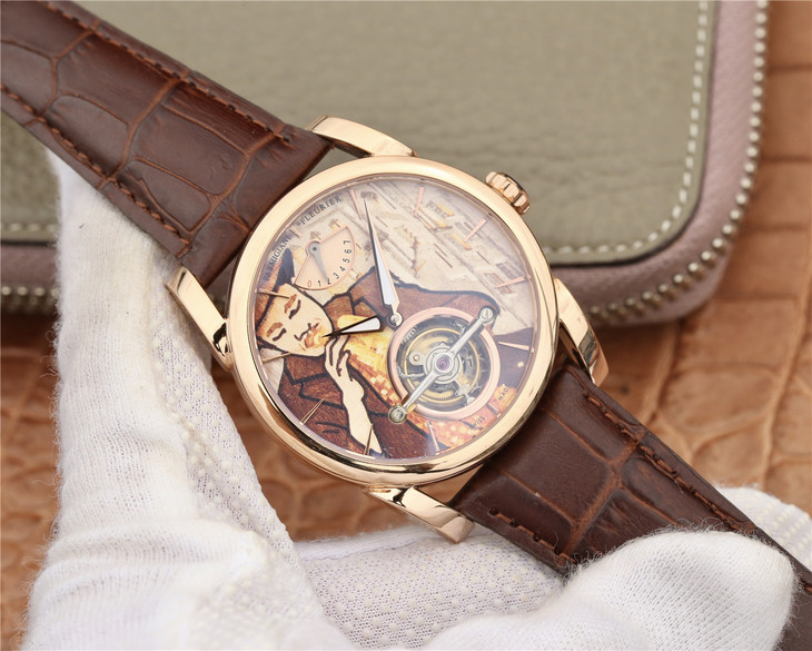 JB帕瑪強尼TONDA繫列PFS251款陀飛輪腕錶(同步原裝美國國旗吉他、英國國旗吉他、牛仔薩克斯三個字面),搭載真陀飛輪手動上鏈機械機芯,手繪原裝字面,將品牌設計師初衷——濃厚的歐美音樂風情釋放得,在保證腕錶高品質的基礎上,腕錶整體顯得非常搶眼,走出去不撞錶的同時,上手非常有意境,出門服飾搭配的畫龍點睛之效果,讓風情萬種的妳更添一份搭訕成功的資本。腕錶厚度和底蓋得細節同樣毫不馬虎,6點鐘位置的陀飛輪成為了樂器的一個組成部分,設計相當巧妙。12點位置的動力儲備顯示方便日常使用,抄寫原裝數據CNC開模錶殼,外殼鍍18K金絕不褪色,意大利真皮大竹節錶帶,原裝雙按扣,進口藍寶石防刮鏡面。配上此款腕錶,無論商務還是休閑妳都是全場亮點,JB廠讓您用零頭的價格領略原裝的魅力。