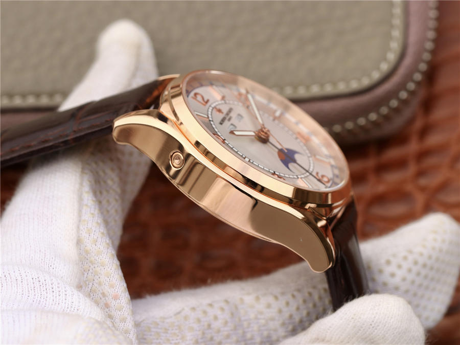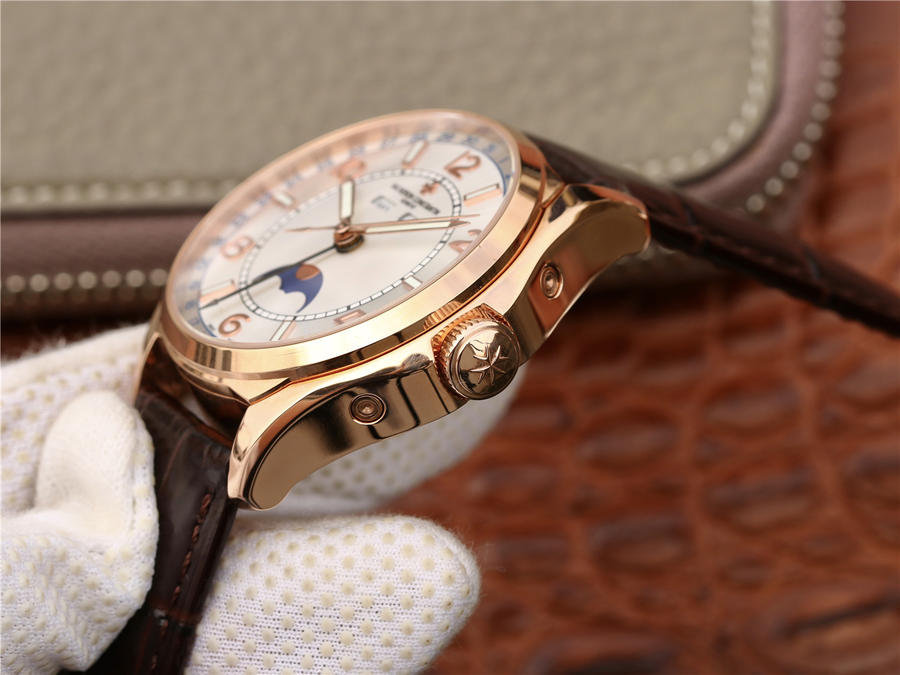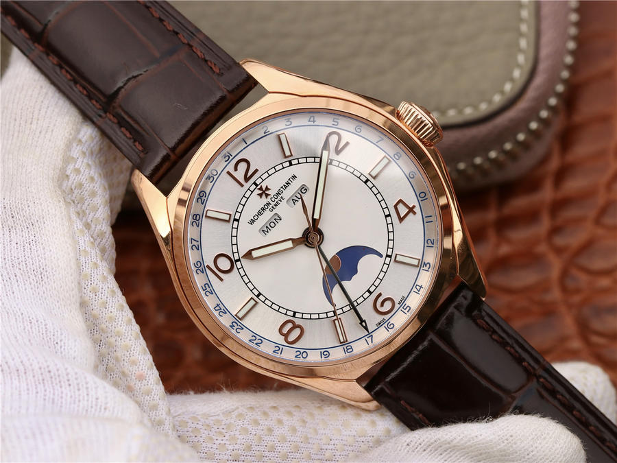 江詩丹頓伍陸之型FIFTYSIX 4000E/000A-B439 這款手錶設計錶達了康斯坦丁在1950年代展示的特別豐富的創造力 錶殼混合了圓形錶殼和龜背錶殼的特點 夜光效果強 具有運動特點 數字時標和夜光條交錯 裝飾感時尚 採用日內瓦印記高仿手錶2460 QCL/1 多功能自動機械機芯 40mm 精鋼殼 原裝摺疊扣 背透 進口意大利小牛皮