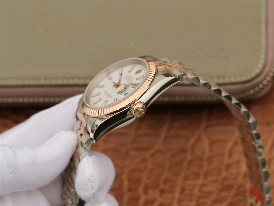 GM勞力士日誌36mm玫瑰金2018年度新款日誌14k包金繫列:因不斷的追求而不斷去完善和改進,現攻克了包金各種工藝,正式推出:正宗904L鋼材包金繫列,採用9999真金0.30mm薄片包裹於904L鋼材錶面,也修改了錶帶側面沒有黃金而露出鋼材的缺陷,不是與其他廠家採用“溶金水鍍膜的不穩定性工藝”,本廠工藝優點是:保持手錶的黃金部位長期不脫落、不變色;不像與其他廠家產品配戴短時間後出現變色的現象。GM產品真正“904L鋼材與9999真金”產品,也本著追求完善更好的產品心態為宗旨! GM版本首先與目前市場(2018年以前的舊款區別是在於:1:錶帶頭粒結構的區別。2:新款字面6時位下方有“皇冠”的標誌。