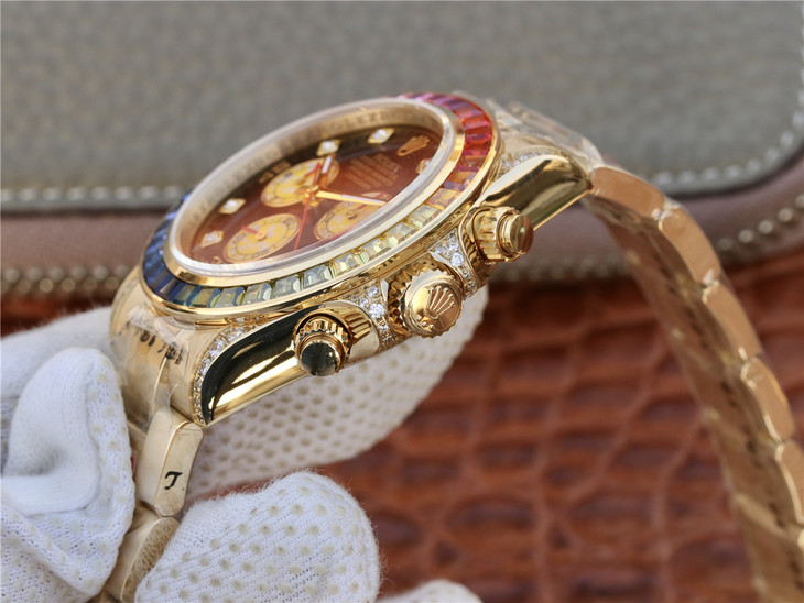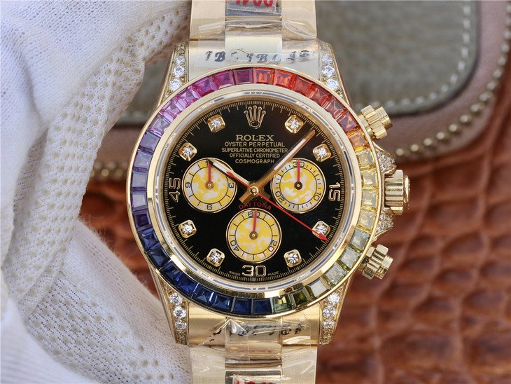 勞力士全金彩虹迪通拿一比一高仿手錶 116598 RBOW¥3580 郵箱:[email protected] Wechat(微信):V2928124168 勞力士116599RBow全新彩虹圈迪通拿Daytona升級版40mm男錶。 1:升級圈口角度與寶石大小顏色,緞紋字面更加富有光澤,能與原裝保持一致! 2:錶殼按鍵防滑齒紋更加明顯立體! 3:標配與原裝一致的勞力士包裝水晶盒,做到從裏到外一應俱全。 勞力士彩虹圈迪通拿是ROLEX愛好者的聖經之選,搭載7750機芯,奢華副本DAYTONA的新。是夏日腕上豪的解決方案。