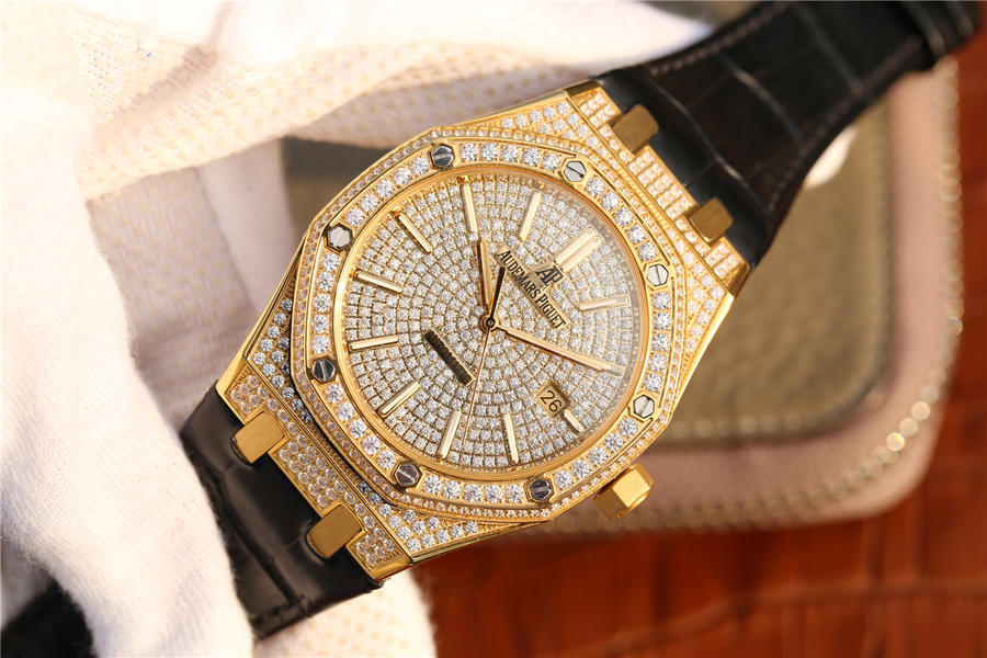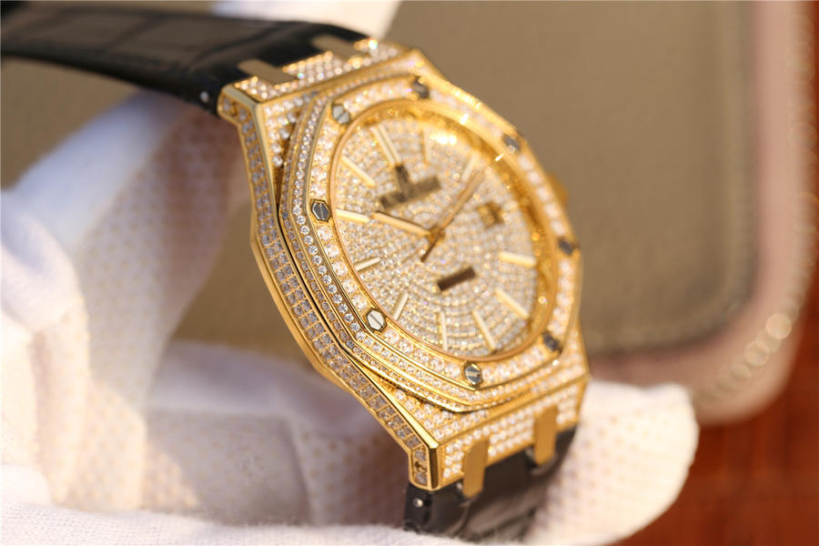 愛彼15400高仿手錶版本 愛彼皇家橡樹15400滿天星繫列¥3980 郵箱:[email protected] Wechat(微信):V2928124168 愛彼皇家橡樹15400滿天星繫列 全錶殼鑲滿鉆 搭載9015改原裝cal.3120超薄自動機芯 意大利牛皮錶帶 鑲鉆原裝錶扣 耗時一年技術改進 造出目前市面薄滿鉆機械錶 尺寸41mm*10mm