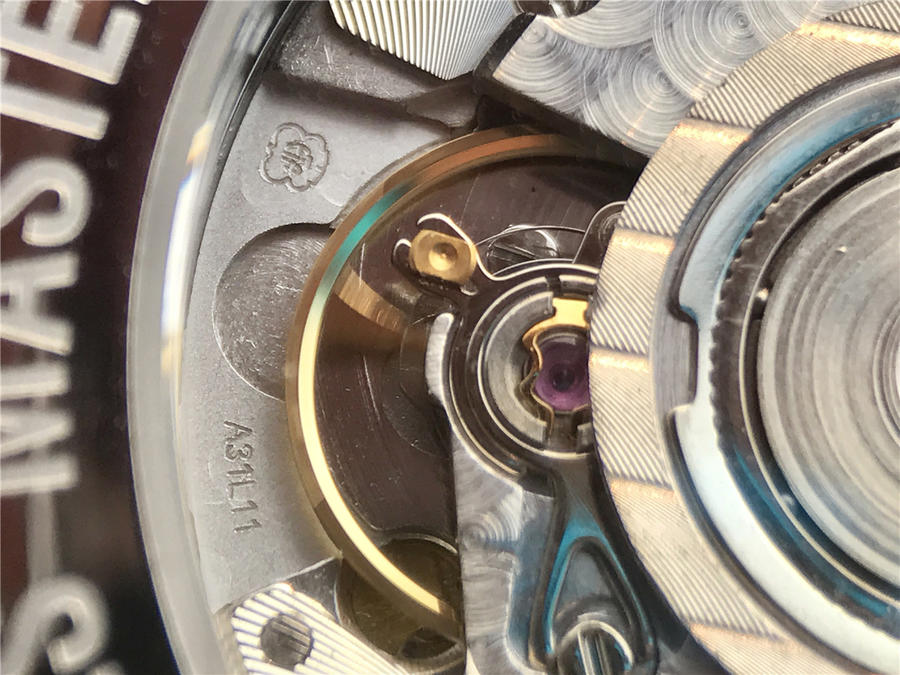 1、同步浪琴官方新款 L888機芯(老款為L619機芯),遊絲盒上方兩個小齒輪真實傳動,擺輪位置對應正面12點鐘位置。